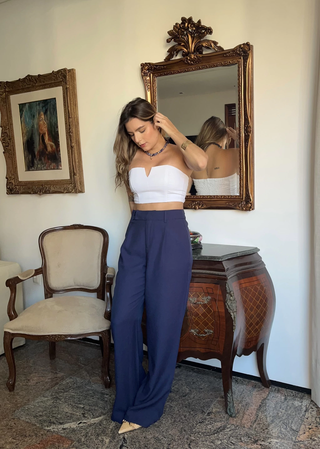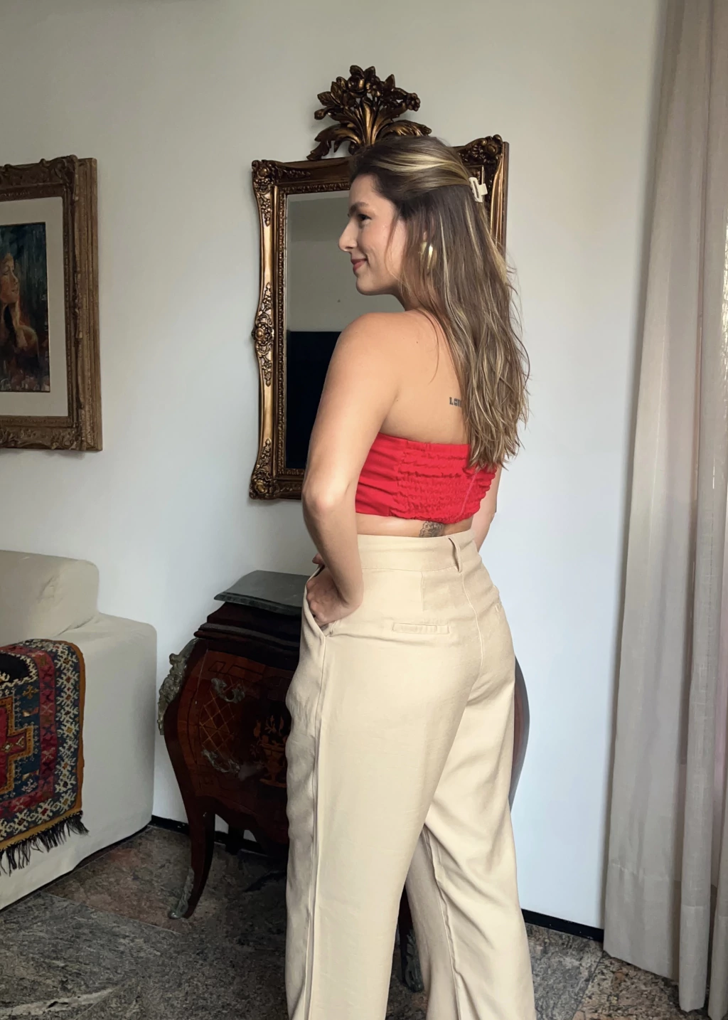 Descrição: Corset de linho estruturado com aspas. Possui lastex e fechamento com zíper destacável nas costas.